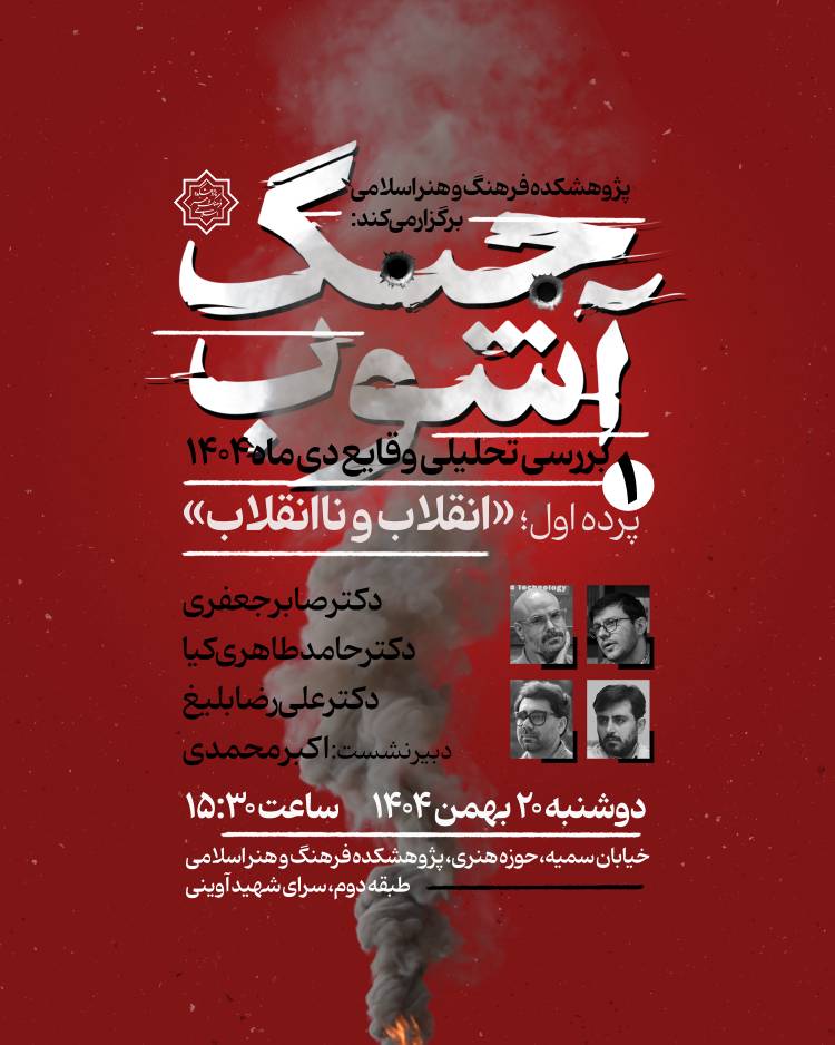 سلسله نشستهای «جنگ آشوب»، بیستم بهمنماه از سوی پژوهشکده فرهنگ و هنر اسلامی برگزار میشود.